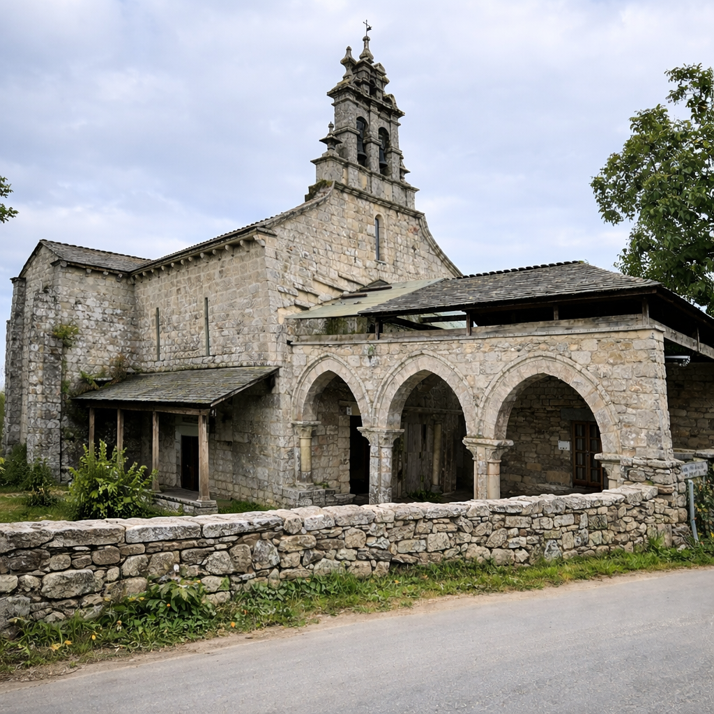 Joya del románico gallego del siglo XII, destaca por su arquitectura sobria, su antiguo monasterio vinculado a la Orden de Santiago y sus valiosos frescos medievales conservados en el interior.